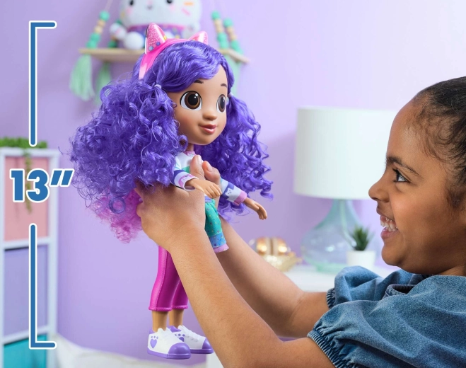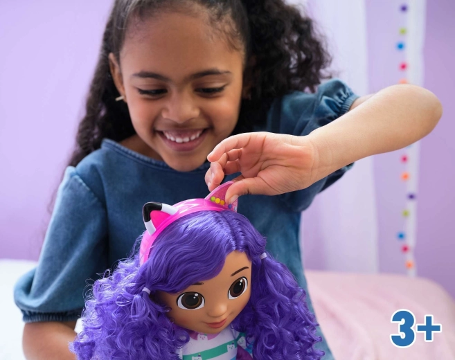 Découvrez la magie de la série Gabby’s Dollhouse avec la charmante poupée interactive Gabby de 33 cm. Elle possède un serre-tête de chat rotatif aux oreilles interchangeables, une tenue de fête stylée et, en appuyant sur le bouton de sa poitrine, elle joue des effets sonores et des mélodies de la série. Idéale pour le jeu créatif, les câlins et pour enrichir l’univers de la Maison des Chats avec d’autres figurines et accessoires.
