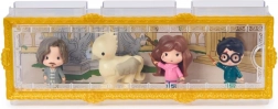 Chaque figurine est finement travaillée, incluant la cicatrice emblématique de Harry et la baguette d’Hermione.