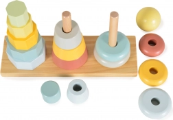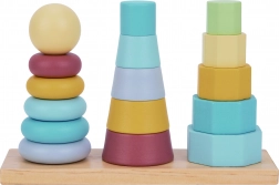 Les trois tours de Tooky Toy offrent aux enfants amusement et apprentissage en un seul jouet. Les formes pastel se saisissent facilement, s’empilent sur la base en bois et permettent de découvrir les couleurs, les formes et les tailles. Idéal comme premier jouet éducatif en bois pour la chambre d’enfant.