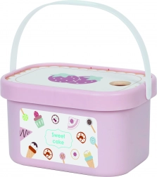 La vaisselle adorable est incluse – tasses, cuillères, fourchettes et petit couteau – ainsi qu’une boîte en plastique solide avec poignée pour un rangement et un transport faciles. Les couleurs pastel et les pièces lisses, sûres pour les enfants, invitent au jeu en solo comme en groupe.