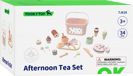 Ce set de douceurs en bois de haute qualité offre tout pour un goûter raffiné : gâteau à découper, roulé, donut, biscuits, macarons et glace. Les enfants exercent leur motricité fine en découpant en parts et en dressant sur le plateau, et développent l’imagination et la communication en jouant à la pâtisserie ou au salon de thé.