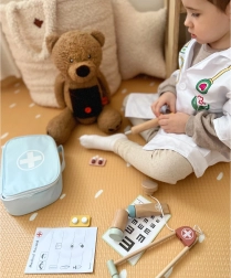 La trousse médicale pour enfants au style soigné renferme tout ce qu’il faut pour que le petit docteur s’occupe de ses patients en peluche. Le set encourage le jeu de rôle, apprend l’empathie et diminue la peur de la visite chez le médecin. Toutes les pièces sont fabriquées en bois de qualité et peintes avec des peintures sûres et non toxiques.