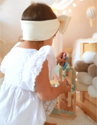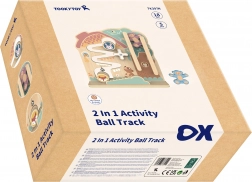 Ce tableau en bois de qualité combine un labyrinthe et une piste en un seul ensemble ludique. Les enfants aident les joyeux animaux – le lapin, le renard et les petits singes-marionnettes – à parcourir des chemins sinueux et des descentes. Le jeu se termine par le doux tintement d’une clochette, qui stimule l’ouïe et renforce la joie de réussir.