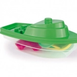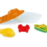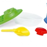Ce bateau en plastique coloré est un complément indispensable pour tout enfant qui aime jouer à la plage. Le kit comprend également différents moules et récipients permettant de jouer dans le sable et l'eau.