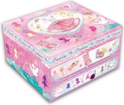 Rangez vos trésors dans une magnifique boîte à bijoux musicale à motif de ballerine. Après remontage et à l’ouverture, elle joue une douce mélodie qui enchantera chaque petite princesse.