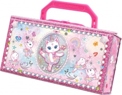 Une boîte à bijoux en forme de petite valise avec un motif de chaton, idéale pour ranger de petits trésors. Un excellent accessoire pour les petites princesses qui veulent garder leurs précieux objets organisés et en sécurité.