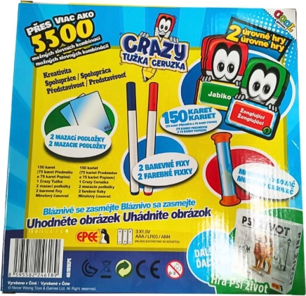 Découvrez le plaisir en famille avec le jeu Cool Games Crazy tužka ! Avec un crayon qui tremble, dessinez et faites deviner des objets d’après les cartes – idéal pour les fêtes et les soirées familiales. Dessin déjanté, devinettes rapides et fous rires garantis pour enfants dès 6 ans et adultes.
