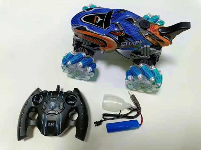 Entrez dans un monde de divertissement d’action avec la voiture RC Requin en version bleue. Ce modèle combine un design attractif avec des fonctions pratiques comme les super lumières, les effets sonores et un effet de brouillard réaliste que vous activez facilement en ajoutant une goutte d’eau. La traction latérale sur les 4 roues aide à franchir différents types de surfaces en toute assurance et à manœuvrer dans les virages.