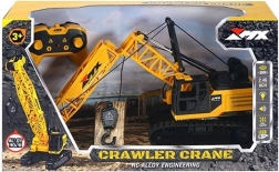 Grue télécommandée amusante et réaliste de couleur jaune avec commande 2,4 GHz, lumières et sons, rotation à 640° et levage puissant. Offre une portée de 20 m, autonomie de 20 minutes, temps de charge de 2 heures et une vitesse max. de 0,65 km/h – idéale pour s’amuser à la maison comme en extérieur.