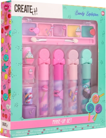 Le coffret de maquillage Candy CREATE IT! apporte amusement et couleur au maquillage des enfants. Le tout est rangé dans un emballage attrayant, inspiré des confiseries, qui ravira les petites coquettes. Grâce à la palette variée de teintes, les enfants créent facilement des looks discrets ou plus marqués et développent leur créativité.