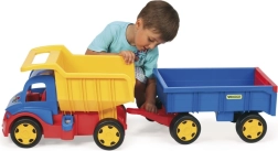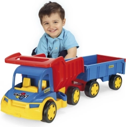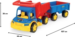Le camion-benne géant avec remorque de la marque Wader est un grand set de jeu robuste pour enfants. Ce set coloré offre des heures de divertissement, favorise la coordination physique et stimule l’imagination.