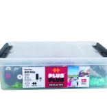 Boîte de rangement pratique avec la construction PLUS-PLUS offrant 2600 pièces, 10 châssis et 40 roues pour créer sans fin des véhicules et des modèles. Inclus: brochure avec instructions. Fabrication de qualité au Danemark, sans phtalates, en plastique recyclé et entretien facile. Idéal pour écoles, clubs et familles. Convient dès 5 ans.