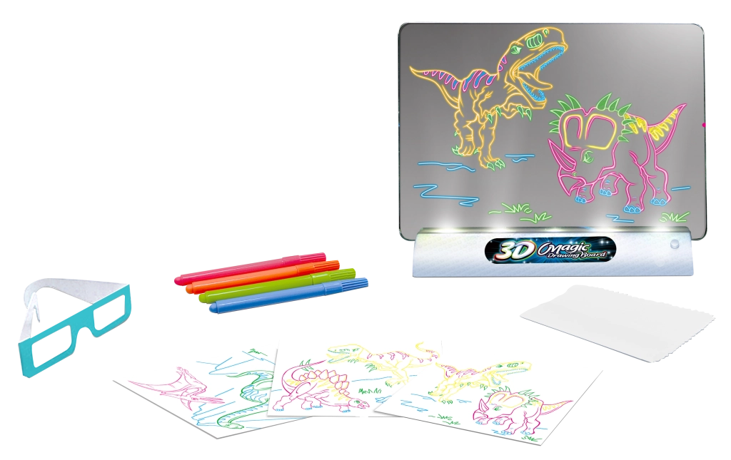 Cette tablette de dessin 3D permet aux enfants de voir leurs dessins sous une nouvelle dimension. Il suffit de dessiner sur la plaquette fournie, de l’insérer dans le lecteur et de mettre les lunettes 3D. Le résultat ? Une œuvre tridimensionnelle qui impressionne !