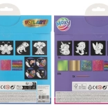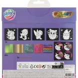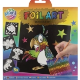 Le kit contient cinq images variées avec des surfaces autocollantes à personnaliser. Les enfants peuvent utiliser 20 feuilles éclatantes aux motifs variés, offrant une créativité sans limites. Il suffit de choisir une partie de l'image, de retirer la couche de protection et de décorer la surface adhésive avec la feuille choisie.