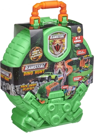 Prépare-toi pour l’action avec le set de dinos portable TEAMSTERZ, qui se transforme une fois ouvert en terrain de jeu thématique avec piste, pièges et rampes. Les enfants peuvent lancer la voiture depuis la rampe, passer devant la gueule du dinosaure et sauver les véhicules de la cage — le tout dans une valise compacte prête à partir.