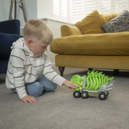 L’astucieux espace de rangement dans la « cage thoracique » permet de garder ses petites voitures favorites toujours à portée. Grâce à sa construction robuste et sa manipulation facile, le jeu est sûr et fluide même pour les plus jeunes enfants.