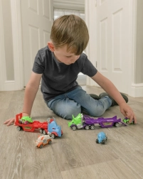 Le transporteur et les petites voitures arborent un design de dinosaure unique qui stimule l'imagination des enfants.