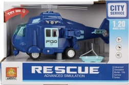Hélicoptère de police minutieusement détaillé à l’échelle 1:20, prêt pour l’action, offrant une expérience immersive grâce aux effets lumineux et sonores.