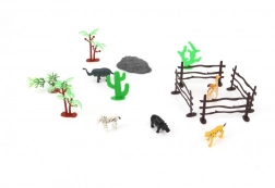 Zèbre, fauves et autres animaux transforment la table en safari ou en petit zoo. Parfait pour jouer seul ou à plusieurs.