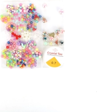 L’emballage contient une palette variée de perles en plastique et un fil élastique pour un enfilage confortable. Le set est parfait pour fabriquer des cadeaux, créer en famille avec les enfants ou se détendre après une journée chargée.