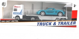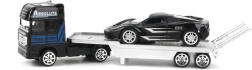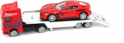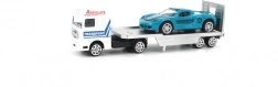 Ce transporteur dépanneuse avec petite voiture de sport incluse offre un jeu d’action en quelques secondes. Grâce au mécanisme pull-back, il suffit de tirer le modèle vers l’arrière, de relâcher et d’observer son départ en mission de secours. Les parties métalliques (die-cast) et la finition soignée garantissent durabilité et allure attrayante.