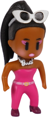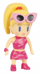 Dans la boîte, vous trouverez une figurine soigneusement conçue avec des éléments roses typiques, des lunettes de soleil et des détails faisant référence à Barbie. Les membres articulés permettent de créer vos propres scènes et histoires, tandis que son format compact se glisse facilement sur l’étagère d’un collectionneur.