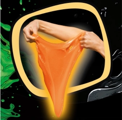 Grâce à sa formule spéciale, ce Jiggly Slime unique vibre agréablement et tremble au toucher, tout en s’étirant facilement dans toutes les directions. Idéal pour de longues séances de malaxage, les passages de main en main, l’étirement et la création de bulles. Le pigment fluorescent lui confère une orange profonde et un effet glow-in-the-dark pour un jeu encore plus amusant.