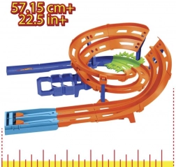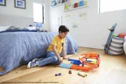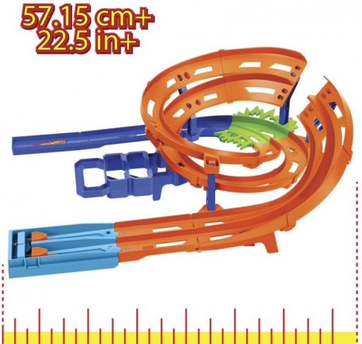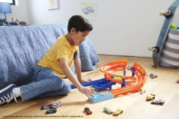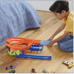 La piste arbore le légendaire logo Hot Wheels et favorise des courses à grande vitesse ainsi que des figures acrobatiques pour les enfants dès 4 ans.