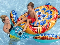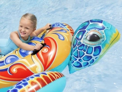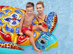 Le design coloré et attractif encourage les loisirs dans l'eau. La tortue présente des motifs vifs en jaune, bleu et rouge.
