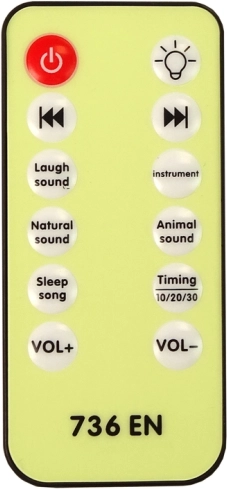 - Projecteur d’étoiles et de lune, mélodies, sons d’animaux, rotation des suspensions, réglage du volume, télécommande