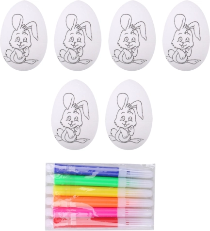 Kit créatif pour enfants et adultes : 6 œufs en polystyrène avec motif de lapin et des feutres colorés pour une décoration facile. Surface lisse pour la peinture, développement de la motricité fine et stimulation de l’imagination font de ce coffret une activité de Pâques idéale ainsi qu’un projet artistique pour l’école ou la maternelle.