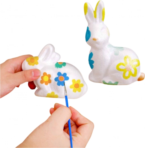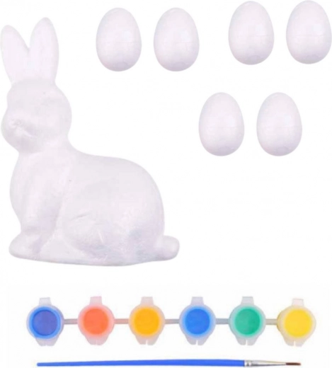 - 6 œufs en polystyrène, 1 figurine de lapin, 6 couleurs, 1 pinceau