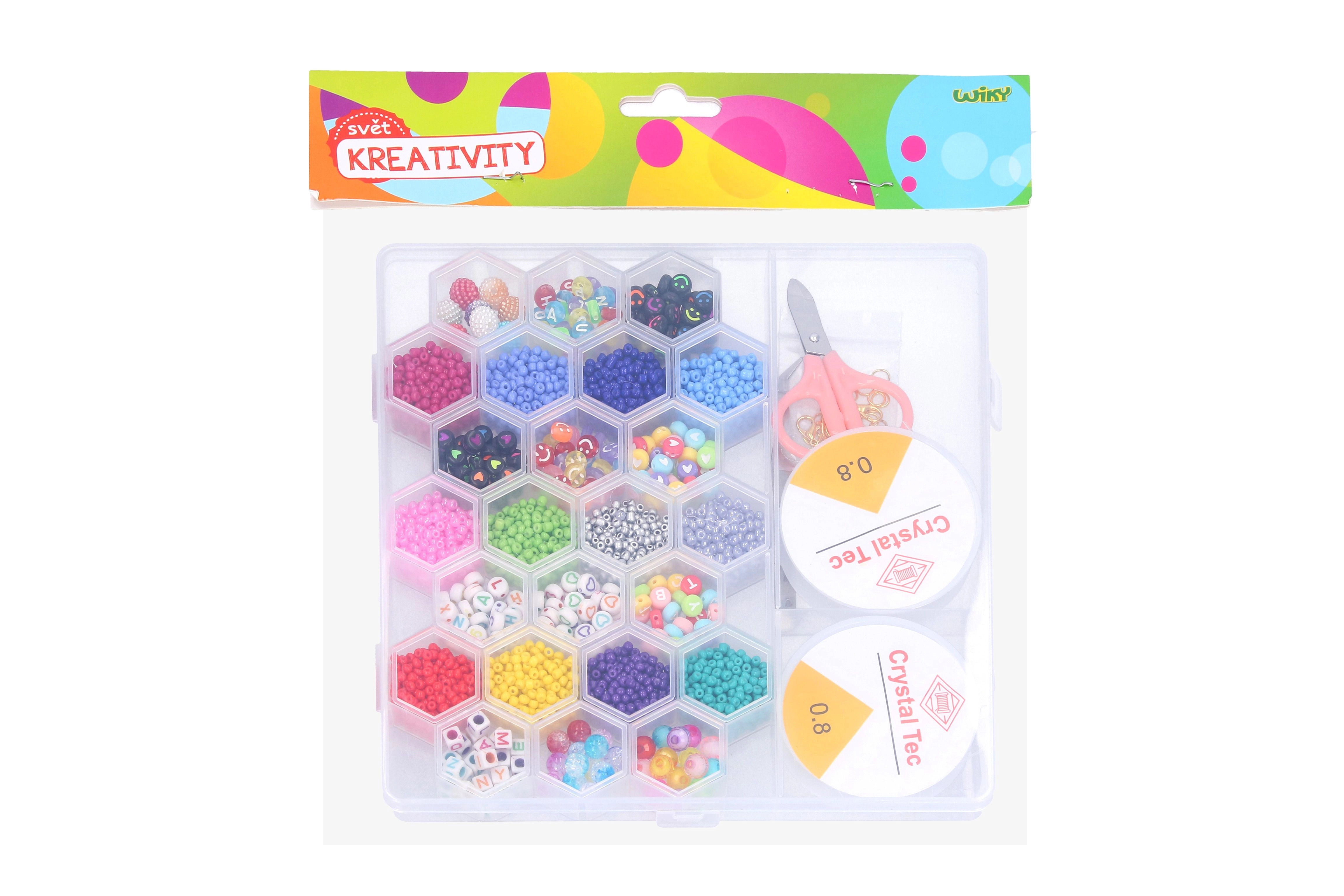Découvrez vos possibilités créatives avec notre set de perles, qui contient tout le nécessaire pour vos projets. Le set comprend des perles, des fils, des ciseaux, des fermoirs et une pincette.