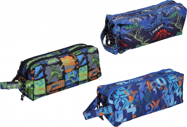 Une trousse-étui stylée au motif pour garçon, aux dimensions 21x7x9 cm, disponible en trois coloris.