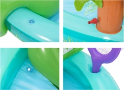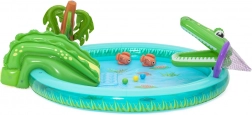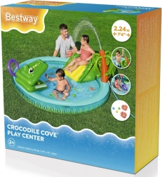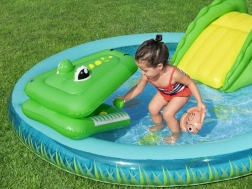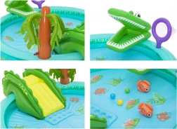 Offrez aux enfants un été plein de rires avec l’aire de jeux aquatique gonflable en forme de crocodile de BESTWAY. Cet ensemble combine un toboggan avec zone d’atterrissage souple, un asperseur en forme de palmier raccordable à un tuyau d’arrosage, ainsi que des activités ludiques comme lancer des balles dans la gueule du crocodile ou pêcher des petits poissons. Le bassin spacieux d’un volume de 210 l est idéal pour les enfants dès 2 ans et offre un divertissement aquatique en toute sécurité dans le jardin.