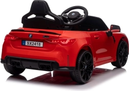 Les deux portes s’ouvrent, ce qui rend la montée à bord facile et amusante pour les enfants. Les lignes sportives de la carrosserie évoquent la légendaire BMW M4 et soulignent l’aspect réaliste de la voiture.