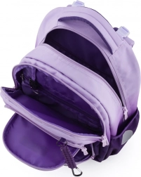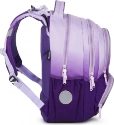 Le sac à dos scolaire Oxy Next dans un attrayant dégradé ombré violet est conçu pour le confort et la sécurité quotidiens des écoliers. Le dossier ergonomique, les bretelles rembourrées et la sangle de poitrine réglable répartissent la charge et contribuent à une bonne posture. Grâce à son agencement clair et à deux grandes poches latérales, les enfants ont tout sous la main.