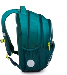 L’intérieur bien pensé avec plusieurs compartiments et poches assure un parfait ordre dans les fournitures scolaires. Il comprend un porte-clés/puce scolaire, deux grandes poches latérales et des éléments réfléchissants pour une meilleure visibilité au crépuscule. Le fond renforcé et imperméable protège le contenu de l’humidité et prolonge la durée de vie du sac.