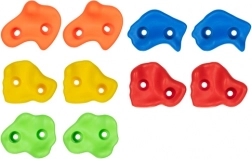 Le coffret contient 10 prises, 2 poignées ergonomiques et un kit de montage complet – idéal pour les structures de jeu intérieures et extérieures.