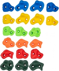 Les pierres sont résistantes aux UV, elles peuvent donc être utilisées à l'intérieur comme à l'extérieur sans risque de décoloration. Les formes et les couleurs variées aident à développer la coordination, la force et l'agilité des enfants. L'ensemble convient aux débutants comme aux jeunes grimpeurs plus expérimentés.