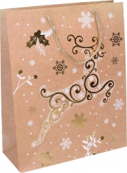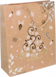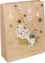 Sac cadeau stylé en taille M, dimensions 26 × 32 × 10 cm, idéal pour emballer les cadeaux de Noël. Il propose 4 motifs de Noël différents, une fabrication robuste et des anses pratiques pour un port confortable.