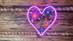 Créez une atmosphère unique chez vous avec ce néon LED décoratif en forme de cœur. Le panneau transparent avec motifs floraux colorés et le tracé rose-violet accentué apportent une énergie moderne et ludique à votre espace. Grâce à l’alimentation USB, fini le souci de remplacer les piles, et les LED économes réduisent la consommation d’électricité.