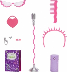 Le set offre beaucoup de fun pour le jeu créatif, le styling et les performances sur la “scène” à la maison. La poupée est articulée pour des poses naturelles et, avec des accessoires comme un microphone, une guitare ou des lunettes en forme de cœur, elle inspire des histoires sans fin.