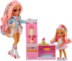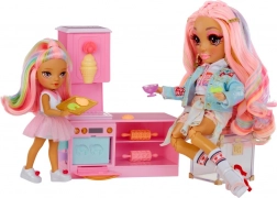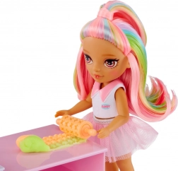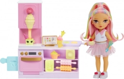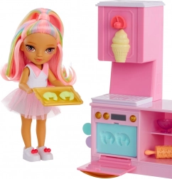 Vis des aventures sucrées avec l’adorable poupée de la collection RAINBOW HIGH LITTLES et sa pâtisserie stylée. La kitchenette avec four, moules et distributeur de glace offre de multiples façons de créer des gourmandises colorées et de développer la créativité et la motricité fine des enfants. Grâce aux cinq pâtes à modeler colorées, les enfants peuvent cuire des croissants, décorer des cupcakes et même « servir » des glaces.