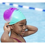 La coupe ergonomique s’adapte à la tête, protège les cheveux et les oreilles contre les éclaboussures tout en réduisant la traînée pour une nage plus fluide. Le look multicolore améliore la visibilité dans la piscine et plaît aux enfants.