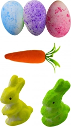 Décorations de Pâques dans un panier parfaites pour une composition de printemps. Cet ensemble comprend diverses décorations en polystyrène léger et durable qui complètent magnifiquement tout intérieur. Ses couleurs pastel soulignent l'atmosphère joyeuse des fêtes et les détails soignés assurent une apparence élégante.