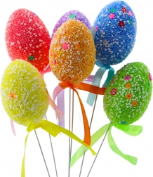 Les œufs de Pâques colorés sur fil sont une décoration idéale pour votre intérieur pendant les fêtes de Pâques. Chaque œuf est soigneusement orné de perles en mousse et de motifs délicats, ce qui leur confère un caractère unique. Grâce au fil élastique, vous les placez facilement où vous voulez.