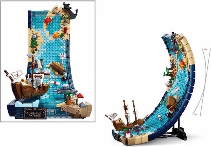 Ce kit au design soigné met en scène l’iconique vague avec voilier, un trésor et des éléments marins, inspirés de l’expédition de Colomb. Idéal pour la construction, la détente et comme décoration stylée sur une étagère.