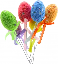 Créez une décoration printanière joyeuse en un rien de temps. Le set comprend 6 œufs décoratifs sur tige de différentes couleurs, qui ressortent joliment dans un vase avec des branchettes, dans un pot de fleurs ou dans des compositions en osier. Le polystyrène léger, au revêtement parsemé de billes et de petits motifs, offre un rendu à la fois ludique et élégant.
