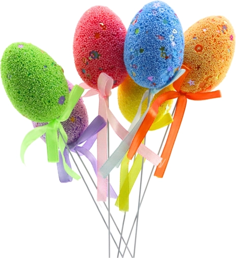 Oeufs de Pâques sur tige avec petit nœud, décoration colorée, 6 pcs